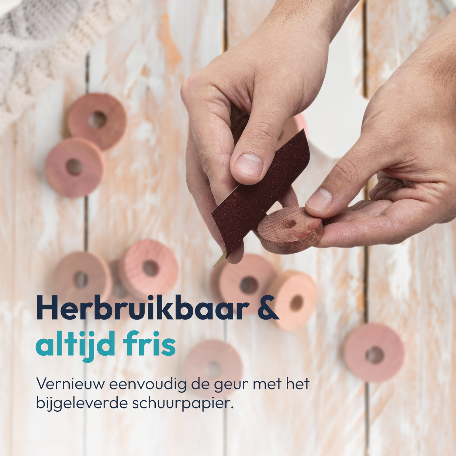 ● Herbruikbaar & duurzaam – de geur en werking kunnen eenvoudig worden opgefrist met meegeleverd schuurpapier.