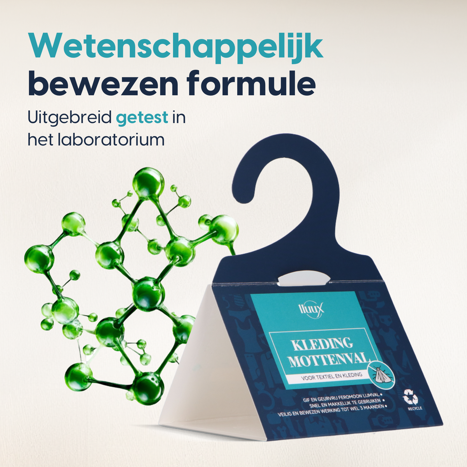 De kledingmottenvallen van lluux lokken en vangen motten met een natuurlijke feromoonlokstof — geurloos, gifvrij en effectief. Zo blijft je kleding langdurig beschermd.